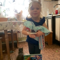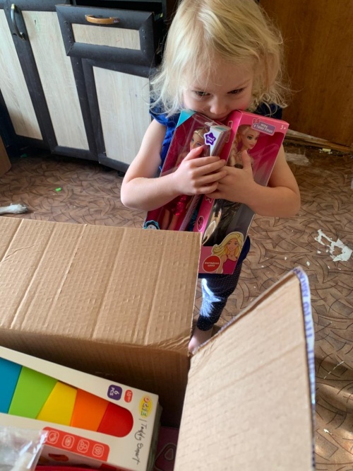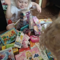 Здравствуйте! Получили посылку через телеграмм-канал "Отдам подопечным Фонда". Мои дочки очень счастливы, кукол из рук не отпускают, гуляют, купают. Из пластилина вместе со старшой сестрой лепит животных, собирали пазлы. Все понравилось, всему рада. Спасибо сердечное, храни вас Господь.