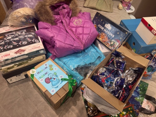 29 декабря 2022г. Новогодние подарки всей семье - деткам и маме с папой, комбинезон и пальто на рост 152 и пальто для мамы Отправитель: Ирина