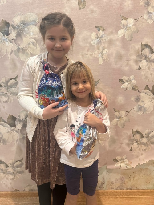 25 февраля 2022г. футболки сыну, девочкам - книжку, косметику (тени, лаки), ободок для волос. Отправитель: Полина Б.