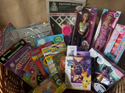 24 февраля 2021г. Носочки, колготы , игрушки, палитра, карандаши, , альбом для рисования , цветная бумага , цветной картон ,краски, карандаши , фломастеры , пластилин, набор для творчества, пазлы, газета "РБ". Отправитель: фонд, магазин Дочки сыночки и Детский Мир
