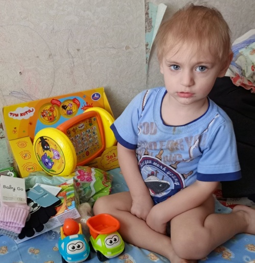 Здравствуйте, Оксана Михайловна и Благотворительный Фонд! Вчера нам пришла посылка от С В. С Огромное вам спасибо за такую посылку, сынок очень был рад. Там были сладости, игрушки, вещи для сыночка, зубная паста для меня и колготки. Спасибо огромное за такое чудо перед Новым Годом.