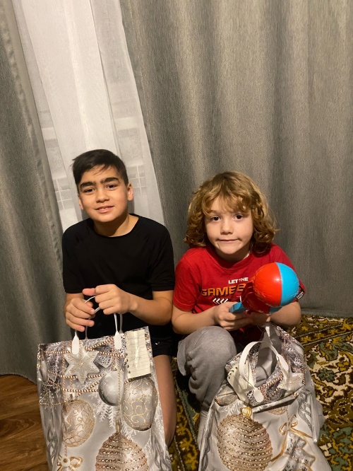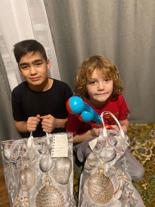 Добрый день! Спасибо огромное за новогодние подарки мне и мальчикам! Леня и Максим передают огромное спасибо. Игрушки отличные, конфетки тоже! Настроение предновогоднее и замечательное! Благодарим фонд и благотворителей, кто поздравил нас всех С Новым годом и Рождеством! В посылке также очень милые открытки, подписанные детьми)))