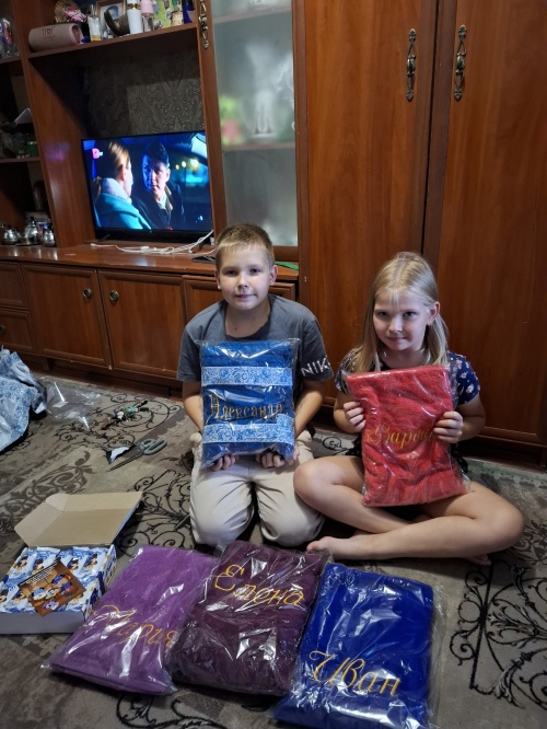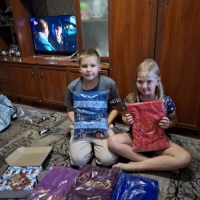 Здравствуйте, уважаемые Оксана Михайловна, сотрудники фонда и все благотворители! Хотим выразить огромную благодарность за посылку. Все вещи очень красивые, маленькие сладкие мини-подарочки дети тут же разделили. Спасибо большое за все!