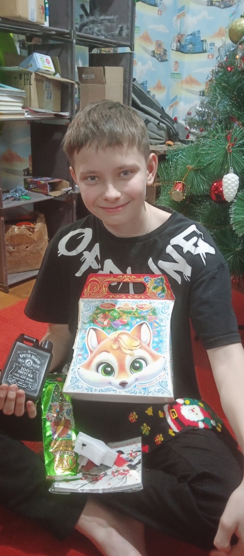 Здравствуйте, уважаемый фонд "Русская Берëза"! Хочу поблагодарить Вас и нашу Снегурочку, Борунову Наталью Вячеславовну из Московской обл. Она прислала замечательный подарок моему сыну на Новый год! В посылке были игровые наборы, сладости, плед (который светится в темноте), куртка и джинсы для сына. Спасибо огромное нашей снегурочке, за такой прекрасный и нужный подарок!!! Спасибо и Вам дорогой фонд, что благодаря Вам, дети получают подарки!