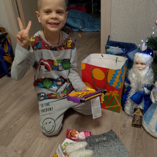 Здравствуйте, уважаемые сотрудники фонда и благотворители! Мы получили подарки от Снегурочки Елены, за что говорю Вам огромное спасибо. Елена подарила магнитный набор Паше, также комплект постельного белья и покрывало. Всё очень красивое. Также получили подарок от Снегурочки Екатерины для Ромы. В подарке были памперсы (большая упаковка), смесь тоже большая пачка, набор расческа и щётка для малышей, 2 геля для купания, 2 пёнки для купания, 2 соли для ванны, крем детский зимний, средство для купания. Екатерина спасибо большое, теперь нам надолго всего хватит. Также благодарим всех сотрудников, волонтёров, благотворителей и, конечно же, уважаемую Оксану Михайловну. Спасибо большое вам.