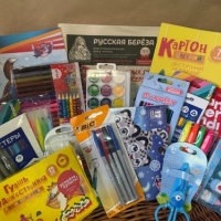 14 сентября 2021г. Православная литература, набор цветных ручек, цветные и простые карандаши, альбомы для рисования, цветной и белый картон, краски, кисти для рисования, точилка, настольные игры, пластилин, маркеры, газета "РБ". Отправитель: фонд, магазин Дочки сыночки и Детский мир