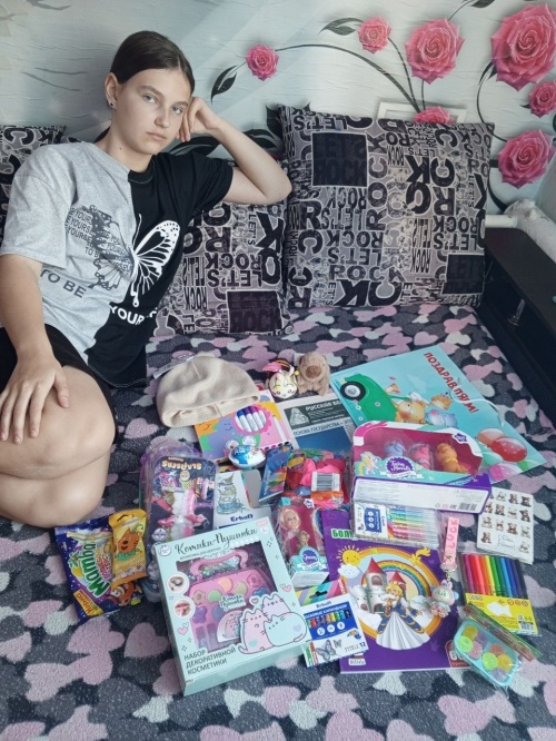 Добрый день, уважаемые сотрудники фонда и благотворители! Нам сегодня Светлана Конюхова прислала подарки детям к Новому году через Валдберис. Для Светы косметика, для Марины плойка гофре, для Максима машинка с пультом управления, для Вовы мягкая игрушка Дракоша. Огромнейшее спасибо говорит вся наша семья Светлане за такие чудесные подарки, за внимание и поздравление! Желаем всем мира и добра.