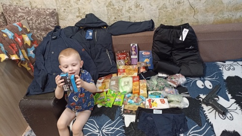Уважаемый фонд "Русская Берёза"! Получили посылку от Татьяны, новую куртку на мальчика, продукты(крупы, печенье, сладости), новые носки, лосины и вещи. Уважаемая Татьяна, мы Вам очень благодарны, спасибо за ваше доброе сердце и щедрость. Дай Бог Вам всего самого хорошего, здоровья, пусть в вашей жизни будет все хорошо!