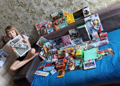 Получили посылки от Татьяны и Оксаны. Хотели бы сказать Вам большое спасибо за вашу доброту и заботу, отзывчивость. И пожелать Вам здоровья, удачи во всех делах. Всё подошло из вещей, игрушкам дети были рады, за сладости отдельное спасибо. Спасибо большое вам за уделённое время и отзывчивость. Хотим пожелать вам здоровья, добра и всего самого наилучшего в жизни! Мирного неба над головой.