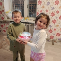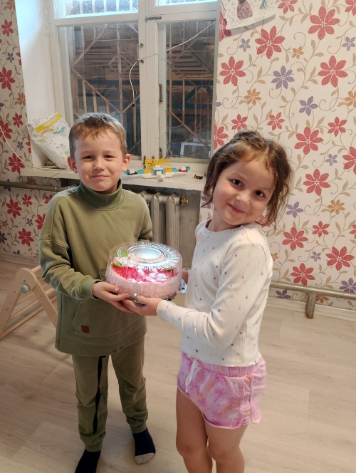 Здравствуйте, наш любимый фонд, уважаемые сотрудники, самые лучшие благотворители и дорогая Оксана Михайловна! Хотим Вам всем сказать огромное спасибо. Вы принимаете участие в нашей жизни, делитесь добротой и душевным теплом. Благодаря Вам, мы стремимся к лучшему. Очень долго наша семья не делилась новостями, всё никак не могла выделить время. Самая главная новость, мы переехали в свой дом. Можно сказать нам повезло, дом продали дешевле рыночной стоимости. Сейчас конечно кредитные задолженности увеличились, но мы их стараемся побыстрей закрыть. Самое главное, в доме можно детям гулять самостоятельно и они в безопасности, приучать к труду. Это достижение, благодаря вашей поддержке! Спасибо Вам огромное! Этот торт с ребятами сами пекли! Хочется сказать спасибо за оказанную помощь, а именно вещевую, следующим благотворителям: Анне, Алине, Анастасии, Елене, Екатерине, сотрудникам фонда и конечно, Ольге Михайловне. Помощь была получена благодаря группе в Telegram. Хочется сказать слова благодарности Оксане Михайловне, это её идея! Которая живёт, расцветает и будет в дальнейшем продолжать это делать!