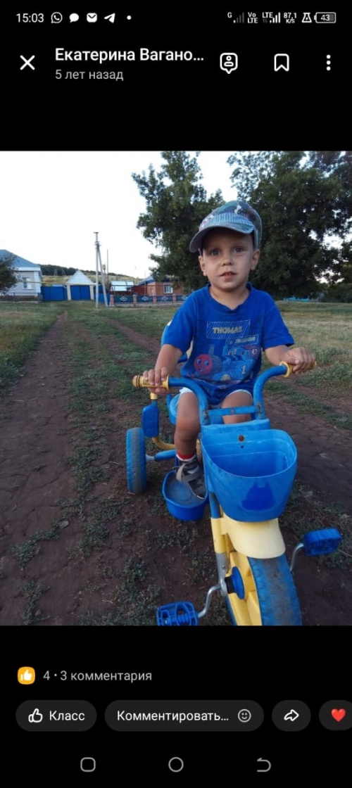 Здравствуйте, уважаемый фонд "Русская Береза"! Обращаюсь к Вам за помощью. Я мама ребенка-инвалида, у него ДЦП. Я работать не могу, т.к. ухаживаю за ним, за ним нужен постоянный уход. Его реабилитация обходится нам очень дорого и нам на многое не хватает средств. Нуждаемся в продуктах питания, средствах гигиены, лекарствах, канцелярских товарах, развивающих игрушках, книжках. Мы будем рады любой помощи. С уважением, семья Вагановых