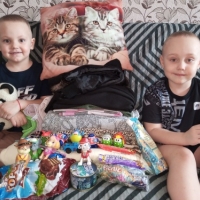 Здравствуйте, уважаемый фонд! Сегодня получила посылку от Натальи Николаевны. В посылочке были сладости, одежда на меня, игрушки, постельное бельë, полотенца, одеяло. Сыночки были очень рады игрушкам, очень любят щенячий патруль. Спасибо огромное Наталье Николаевне, за такую замечательную посылочку. Ермоленко Ольга Игоревна, Омская обл., неполная семья, 2 детей