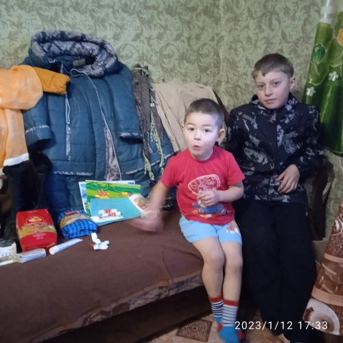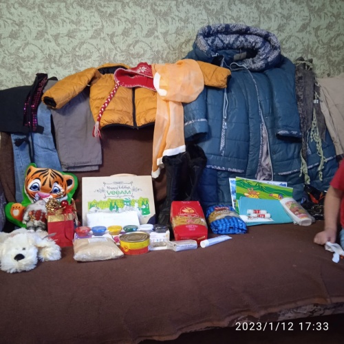 24 декабря 2022г. Посылка с новогодними подарками, одеждой, средствами гигиены и продуктами Отправитель: Добрая воля