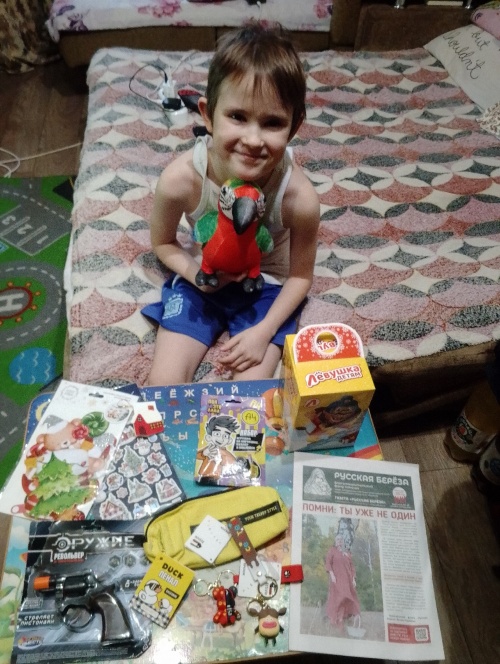 Здравствуйте, наша дорогая Оксана Михайловна и фонд Русская Берёза! Сегодня получили от вас посылочку, с такими замечательными подарками, игрушками ребёнку, он очень рад. Канцтовары для школы, крема, дезодоранты, всё очень кстати. И очень благодарна за тонометр! Спасибо большое девушке Алине за то, что собирает такие шикарные наборы. Очень вам благодарна! Желаю вам счастья, здоровья, процветания и огромное спасибо вам за ваше добро и добрые сердца.