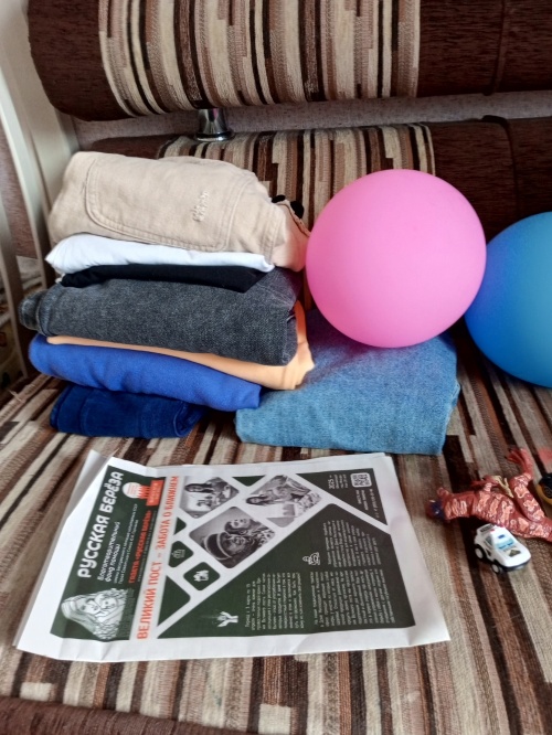 Здравствуйте, дорогой фонд "Русская берёза", Оксана Михайловна, благотворители! Сегодня получила посылочку, благодаря группе в телеграмм "Отдам подопечным фонда". В посылке было много вещей, все подошли по размеру. Также, фонд порадовал полным пакетиком шоколада, сын в восторге! Благодарю Вас всех за оказанную помощь!