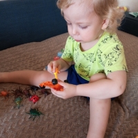 Здравствуйте, дорогой фонд "Русская Берёза", благотворители, Оксана Михайловна! Сегодня получили посылочку от Ольги! Ратмир очень рад, только забрали, сразу начал требовать открыть, уже знает, что для него там, что-то по любому есть). Сидит, пытается пластилин на лицо приклеить. Спасибо за продукты, много всяких интересных супчиков и макарон, ему более интересно будет их кушать), к игрушке собаке ещё присматривается, побаивается видимо. Карточки просто чудо, животных он изучать и смотреть любит). Спасибо вам огромное!!!