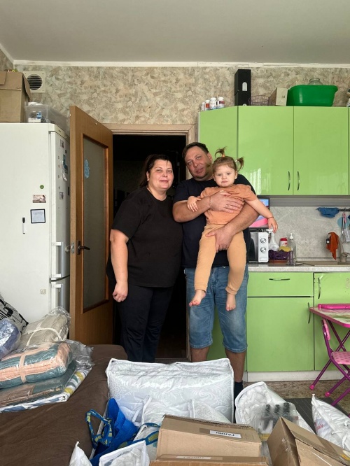 Здравствуйте. Меня зовут Галян Оксана. Мы с мужем и 4-мя детьми, приехали из Курской области. Хотим поблагодарить сотрудников благотворительного фонда за оказанную помощь. Нам привезли посуду, подушки и одеяла для всех членов семьи, чайник, сковородку, кастрюлю, полотенца, постельное белье. Огромное вам спасибо и низкий поклон!