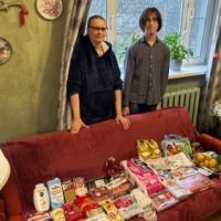 3 октября 2024г. 6 кг продуктов (крупы, макаронные изделия, консервы), пачка чая, шампунь (2 флакона), зубная паста, набор зубных щеток (3 шт.), набор туалетного мыла (4 шт.), дезодорант, краска для волос, носки (4 пары) Отправитель: Полина