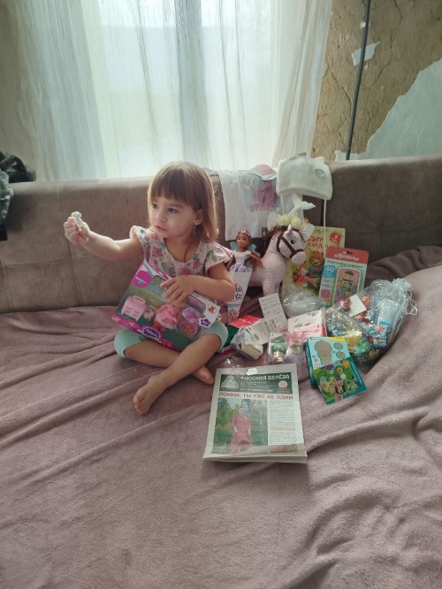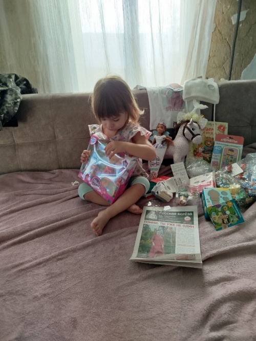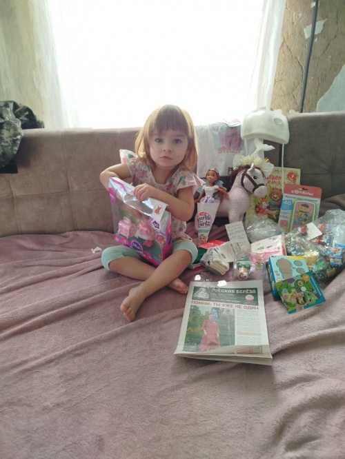 Уважаемые сотрудники отдела помощи фонда "Русская берёза"! Выражаем огромную благодарность Вам и Оксане Михайловне за подарки моей доченьке на день рождения, нам исполнилось 2 годика! Валентине очень понравились игрушки, она играет ими с большим удовольствием. А также спасибо за вещи сладости. Благодарим Вас за то, что вы нас помните, помогаете, не забываете и помогаете моим деткам. Хранит вас Господ! Здоровья Вам крепкого, счастья и благополучия.