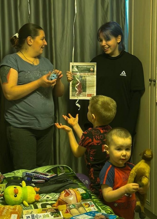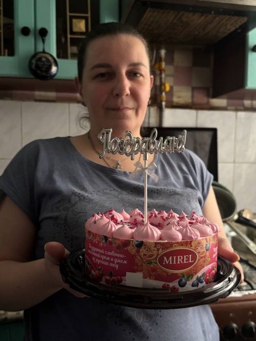 Здравствуйте! Мнения зовут Пузикова Ирина, я многодетная мать-одиночка. Хочу поблагодарить сотрудников благотворительного фонда «Русская береза» за то, что поздравили меня с днем рождения, за подарки и торт. Больше спасибо и низкий поклон за вашу заботу!