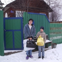 Первая, по ходу движения, подопечная семья, проживающая в п. Добчур – семья Копыловых. Галя была дома, и пока она выходила, я увидел, что около ее дома на проводах сидят нахохлившиеся скворцы и идет густой снег. У скворцов был такой вид, что не рано ли мы прилетели, и вообще мы куда надо прилетели? Галя рассказала мне, что у нее сильно заболел бок. Ее отправили в районную больницу на обследование. Сначала думали, что у нее аппендицит, но потом решили, что надо проверять кишечник. Бесплатное УЗИ ей назначили на 13 апреля. Платное можно делать хоть сейчас. Пока не закрыли у них переправу, обследование нужно пройти как можно быстрее. Еще Галя попросила, если будет возможность, помочь ей приобрести куриц, гусей и кроликов, и на первое время немного кормов для них.
