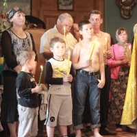 Предварительно договорившись о Крещении с благочинным округа священником Игорем Вилесовым, я отправился в с. Белоево Кудымкарского района, чтобы привезти семью Ярковой Л. В., двое детей которой больны туберкулезом. Мама уже давно хотела покрестить малышей, но они очень долгое время находились в диспансере и профилактории в последний год, и никак не удавалось выбрать время и выделить на это средства. Наконец такая возможность представилась, и я благополучно забрал их из дома и привез в с. Егва в Свято-Алексеевский храм, где уже собирались другие люди на Крещение. Оставив Ярковых, я поехал в д. Тарово, чтобы забрать еще и семью Сидоровой Т. В., которая хотела покрестить своего младшего ребенка Дениса. Поскольку времени было в обрез пришлось ехать очень быстро, но с помощью Божьей мы все успели и вовремя приступили к Таинству, как раз когда священник завершил Литургию.